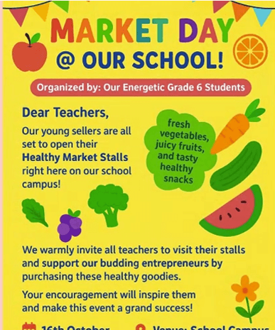 The students of Grade VI at Aditya Vidyashram School brought classroom learning to life through an innovative Live Market Activity, conducted as part of their Tamil subject lesson. The objective was to help children relate the concept from the textbook to a real-life experience by engaging in a practical demonstration of fruit, vegetable, and edible item sales. Students enthusiastically took on the roles of buyers and sellers, using Tamil vocabulary in real-time communication. This interactive learning experience not only enhanced their language skills but also developed their confidence, teamwork, and social interaction abilities. The event received wonderful support from parents, who encouraged and motivated their children by contributing items and participating with great enthusiasm. The collective efforts of all the teaching and non-teaching staff added to the success of the event, ensuring smooth organization and joyful participation from every student. A heartfelt appreciation goes to Surya Ma’am, whose creative planning and dedicated guidance made this activity possible and impactful. The Live Market turned out to be a memorable learning experience blending education, enjoyment, and teamwork in a vibrant and meaningful way.